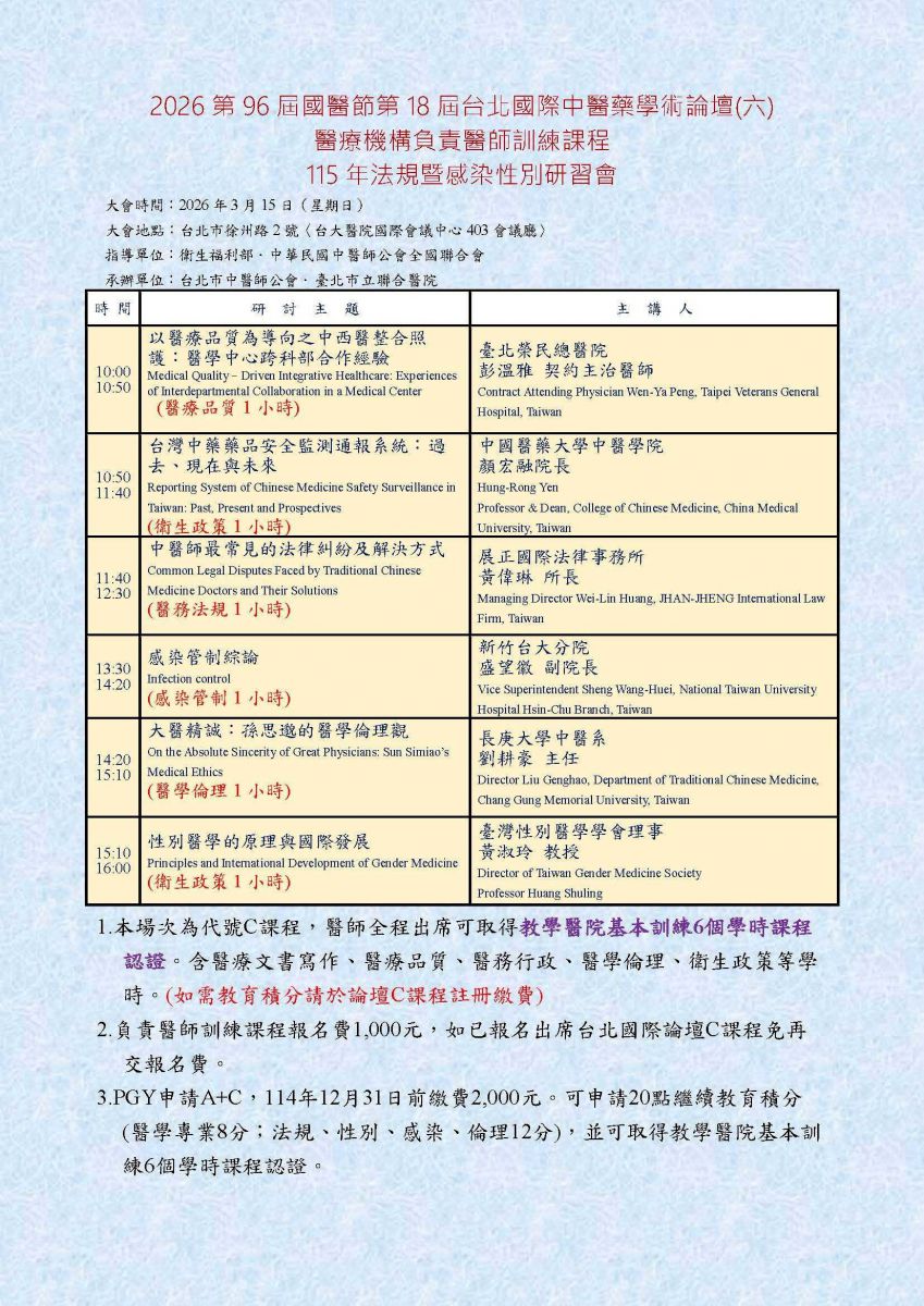 詳洽:台北市中醫師公會 (02)2314-3456