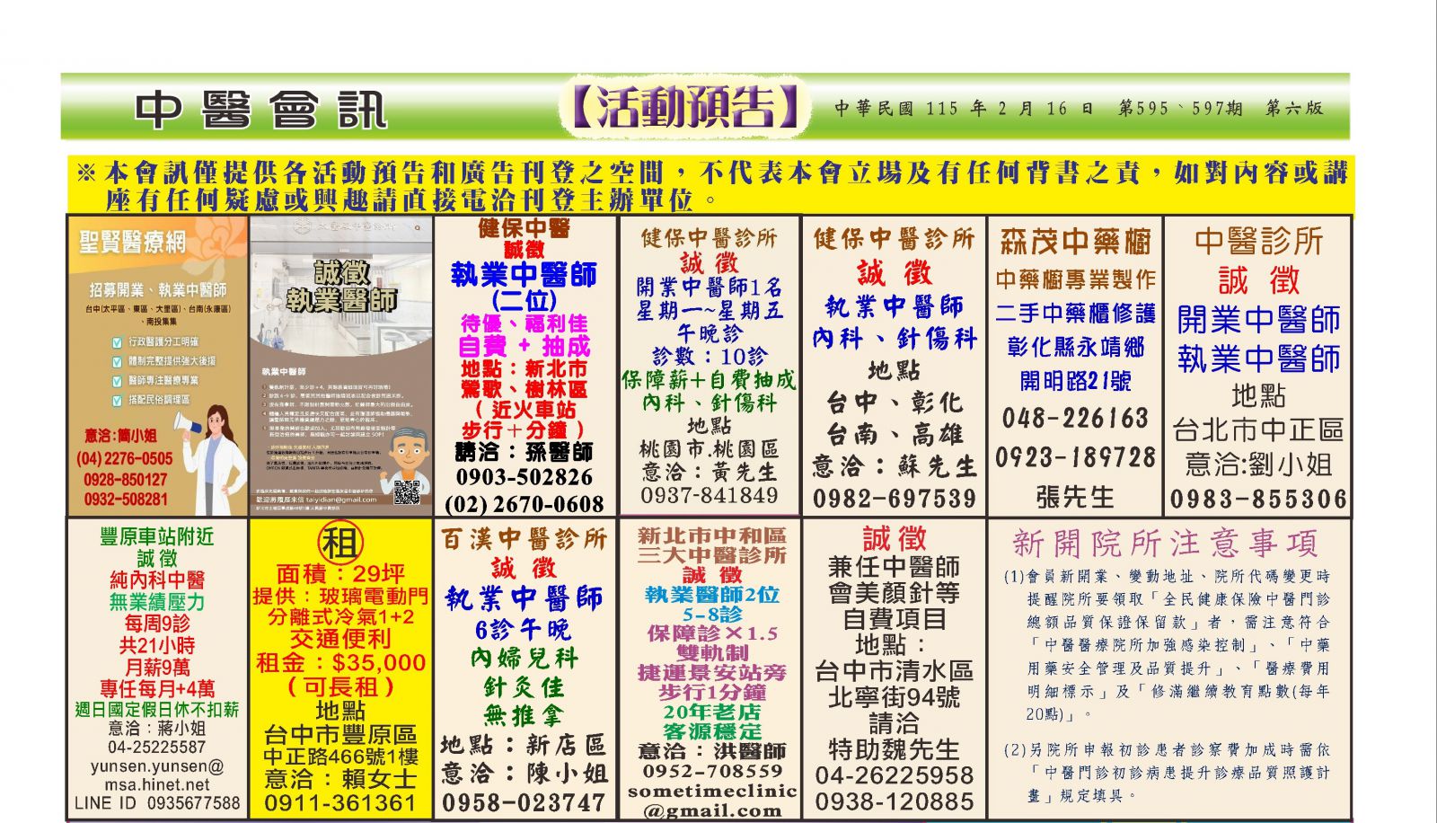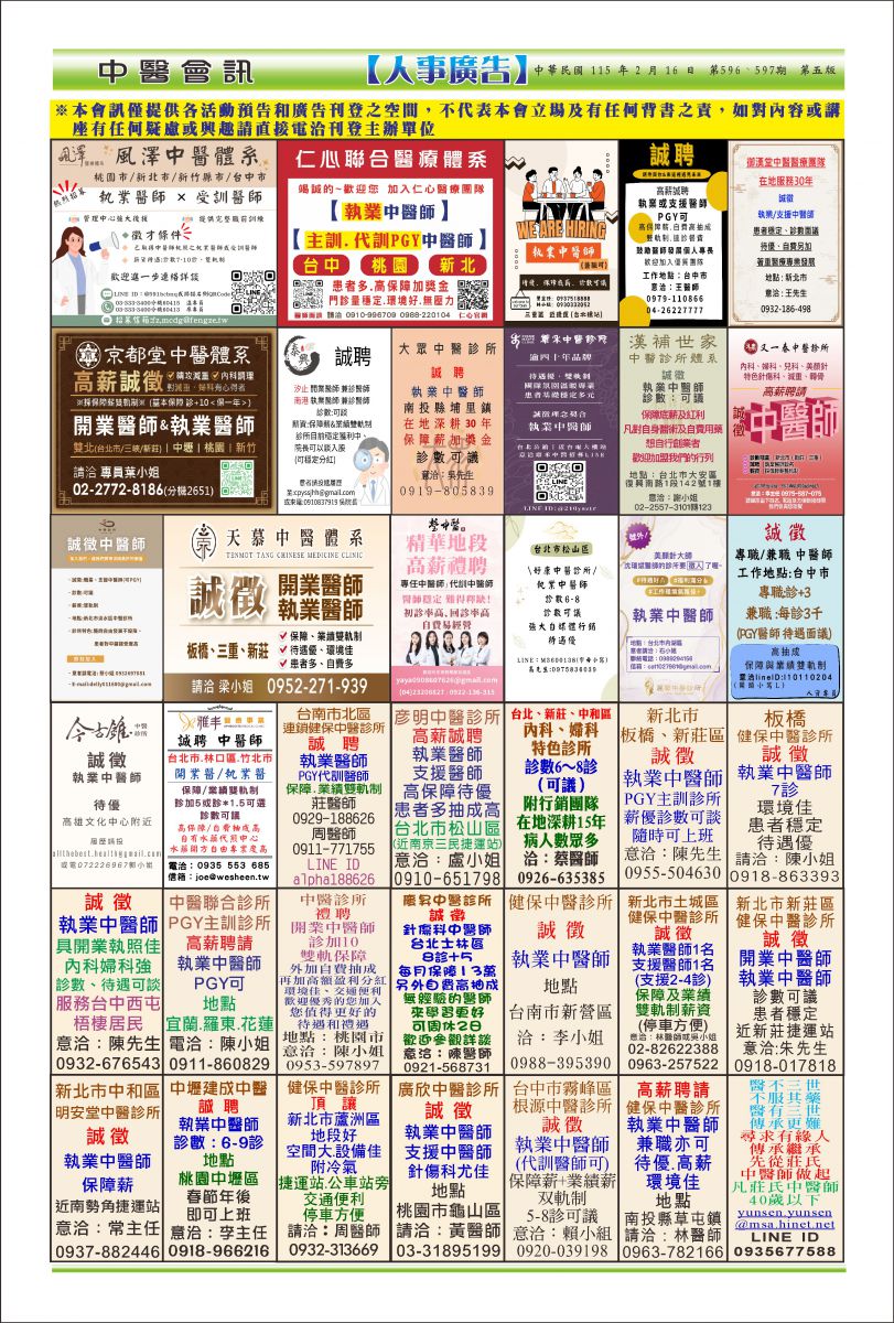 中醫會訊第596-597期廣告刊登